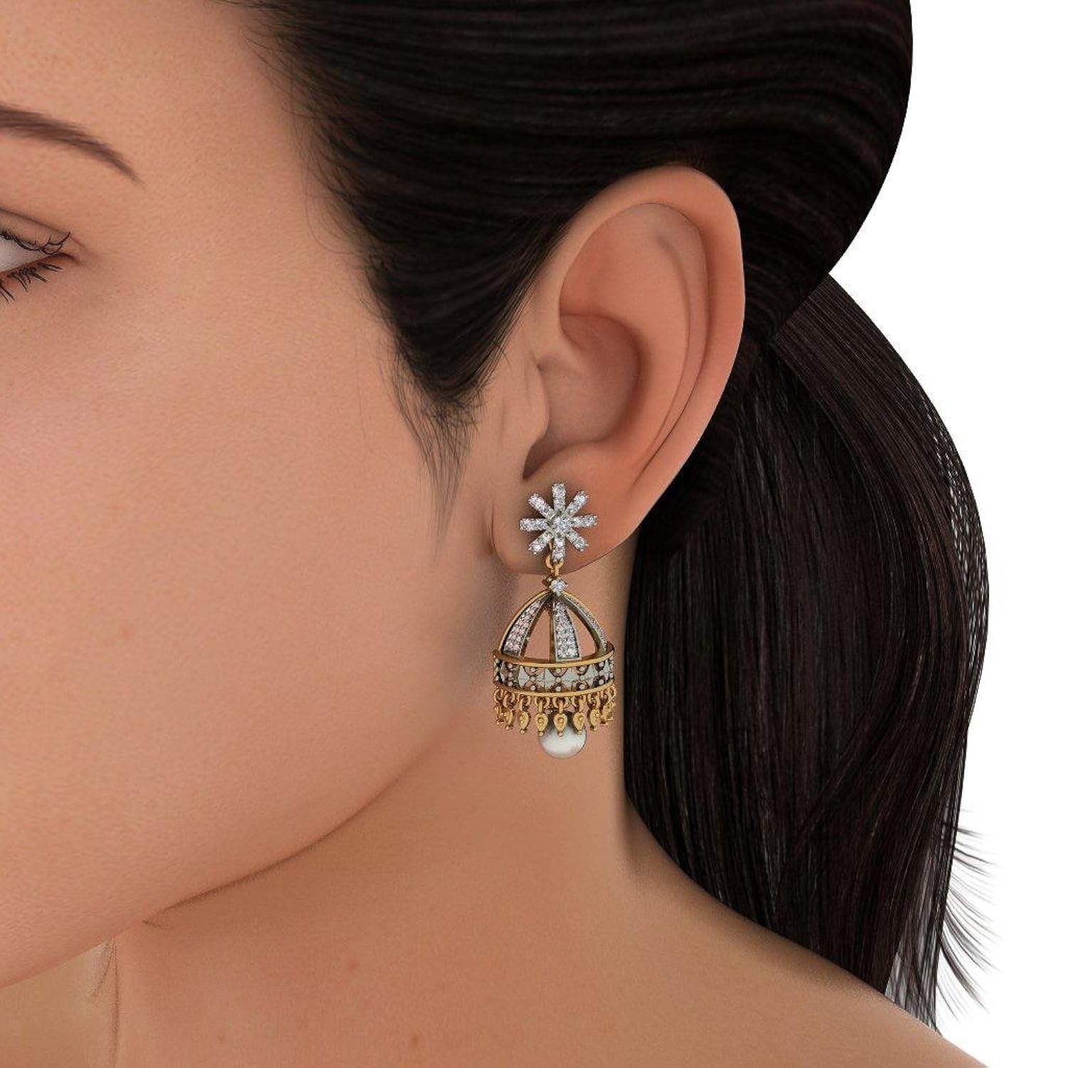 - The earrings have been adorned with real diamonds.